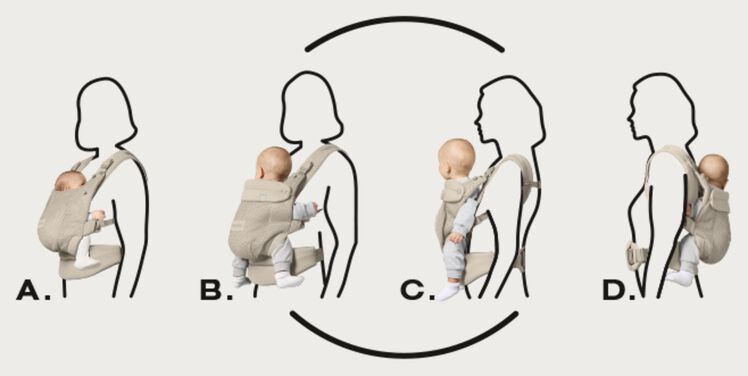 Patru poziții de purtareFlexibilitate pe măsură ce copilul crește Alege dintre cele patru poziții ergonomice de purtare pentru a găsi combinația perfectă pentru tine și copilul tău. Suport ergonomic și confort sigur pentru fiecare nouă aventură. |