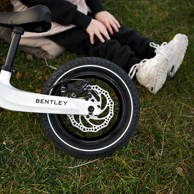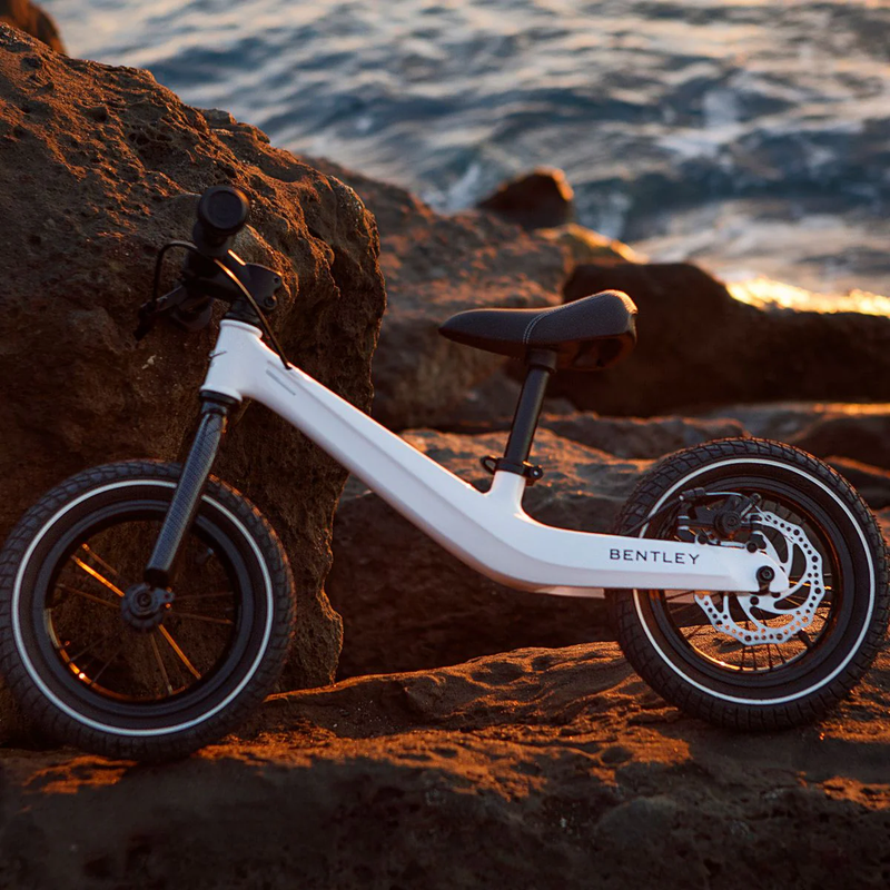 Bentley Balance Glacier White este bicicleta de echilibru de lux, creată în parteneriat cu Bentley Motors. Cu un cadru din aliaj de magneziu inspirat din liniile Bentley Continental GT, ghidon matlasat în formă de diamant și șa din piele eco cu cusături albe — eleganța autentică Bentley, pentru copii de la 3 ani.