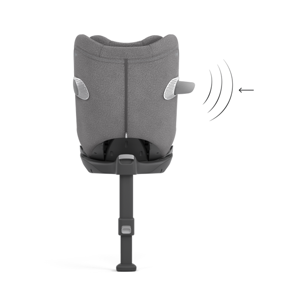 În poziția sa cu spatele la sensul de mers, Sirona T i-Size reduce riscul de rănire în cazul unei coliziuni frontale. Testele arată că forța de impact dintr-un accident frontal este distribuită mai uniform pe o zonă mare a carcasei scaunului auto. Vă recomandăm să folosiți Sirona în poziția cu spatele la sensul de mers, până când copilul are cel puțin 15 luni+. Ideal până la epuizarea utilizării lui.