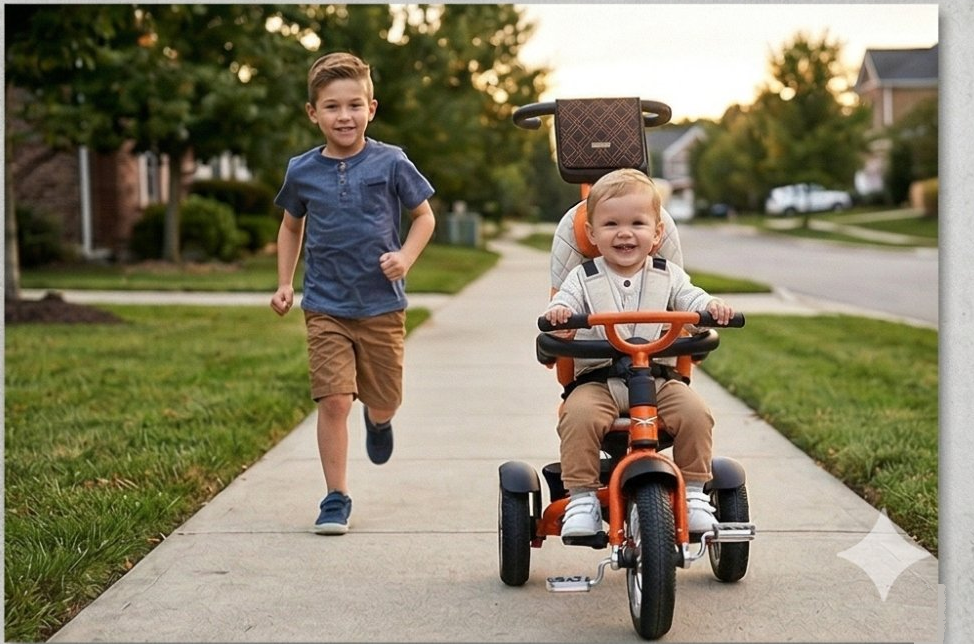 6 în 1 — crește odată cu copilul tăuTricicleta se transformă în 6 configurații diferite, adaptându-se perfect fiecărei etape de dezvoltare a copilului. De la bebeluș la copil activ — un singur produs pentru toți anii de plimbare. |